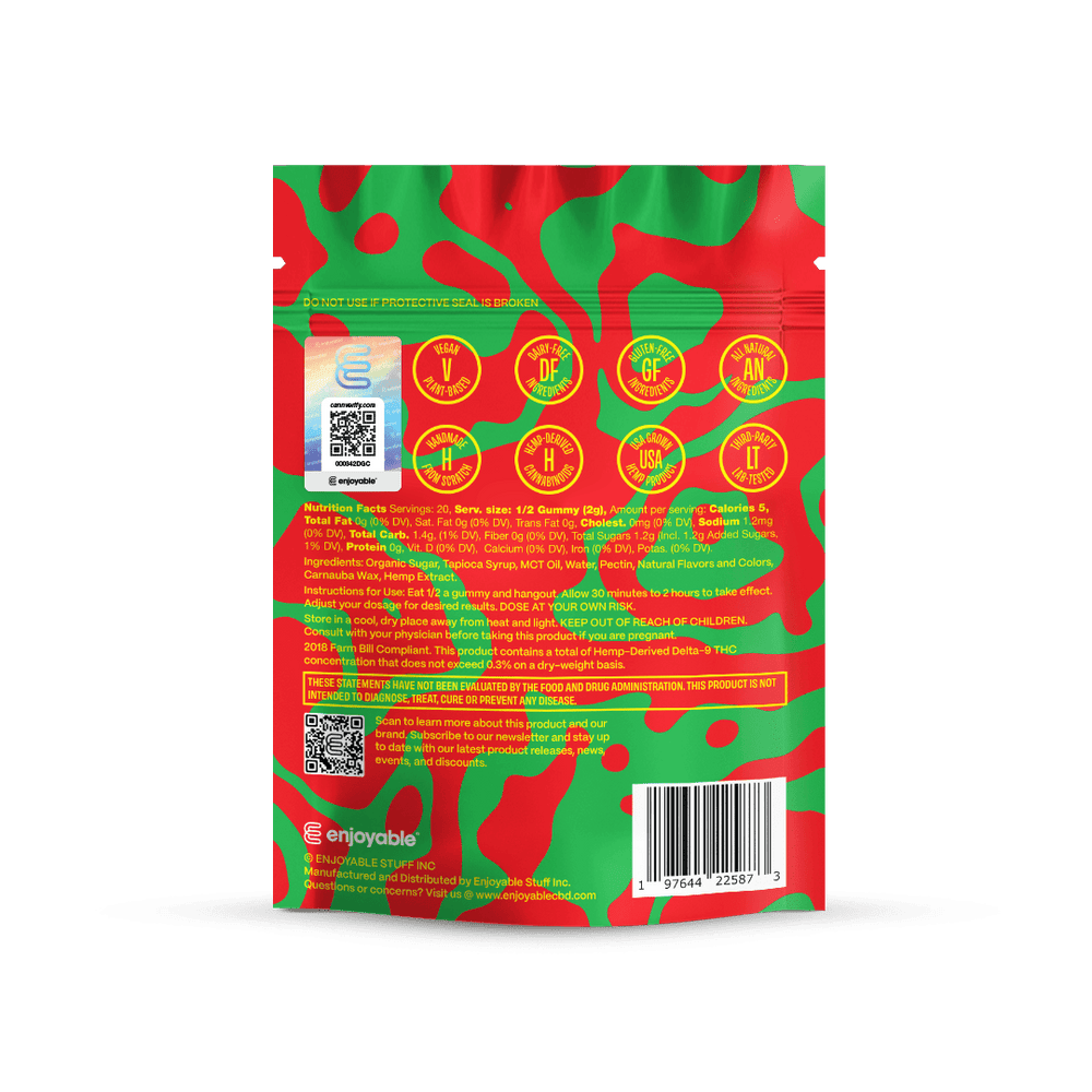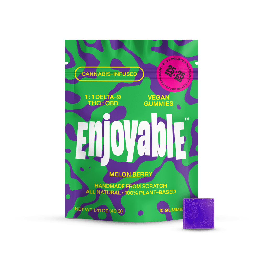 These vegan gummies blend Delta-9 THC and CBD for a balanced experience. π Choose from fruity flavors like Cranberry Grape, Melon Berry, or Pomegranate Peach. Each gummy is crafted with organic ingredients and a smooth texture that melts in your mouth. π Effects take 30 minutes to 2 hours, so patience is part of the fun! Perfect for relaxing moments or social vibes without the fuss.