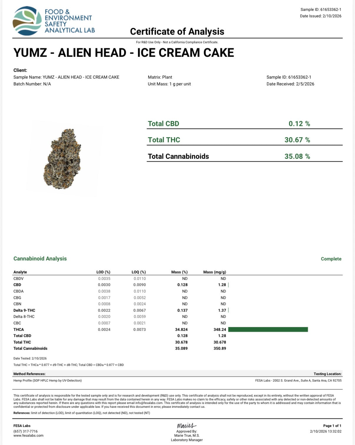 YUMZ - AAA EXOTICS - ALIEN HEAD - THCA FLOWER - 30.67%